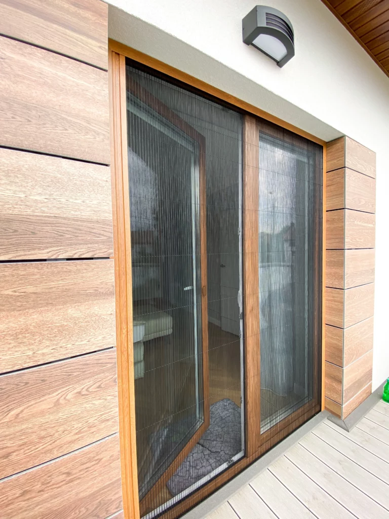 To rozwiązanie dedykowane na bardzo duże powierzchnie. Plisowana konstrukcja siatki poruszającej się w poziomie w formie paneli po cienkiej listwie podłogowej. Dzięki możliwości łączenia ze sobą nawet kilku paneli pozwala na jednoczesne zasłonięcie powierzchni o szerokości dochodzącej do 8m. Zaprojektowana z myślą o połączonych szerokich szkleniach lub drzwiach przesuwnych.